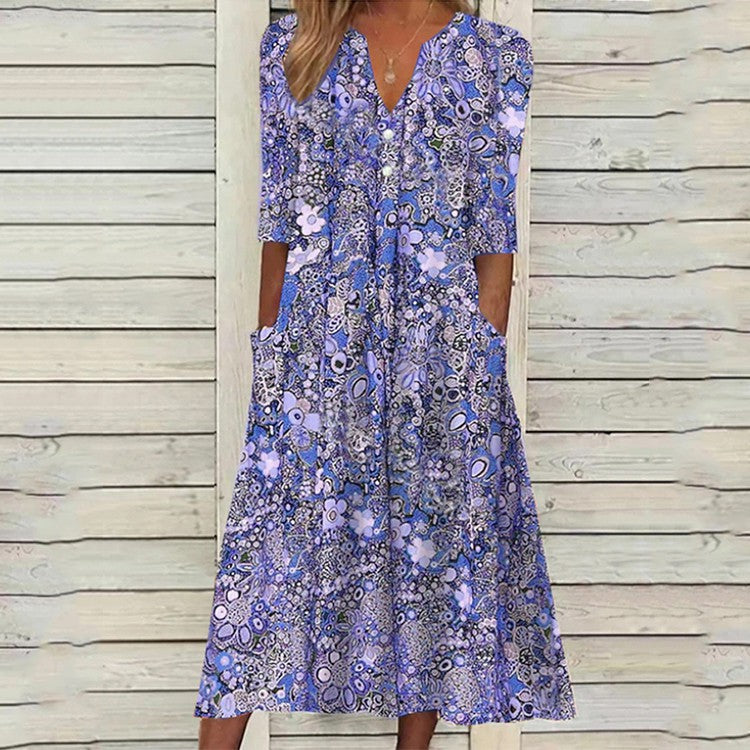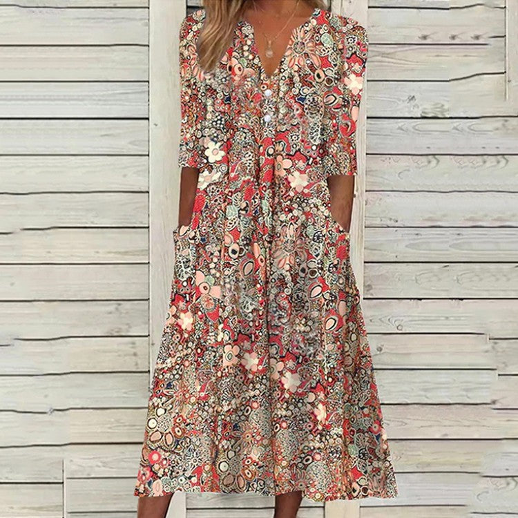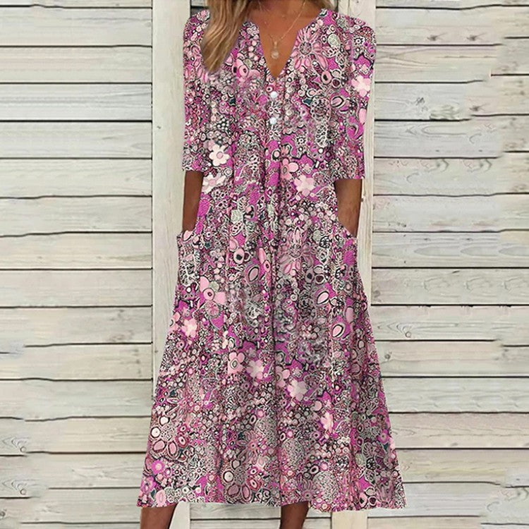 • Load image into Gallery viewer, Vestido casual estampado con cuello en V y bolsillos abiertos - EspaƱa