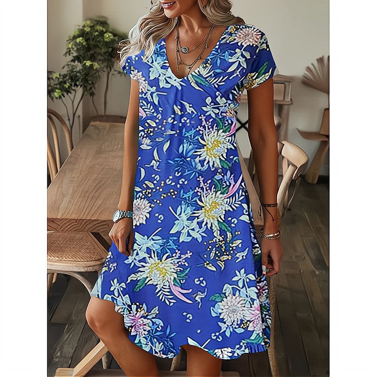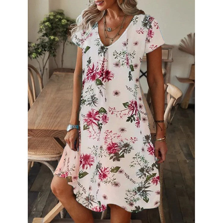 • Load image into Gallery viewer, Vestido de manga corta con escote en pico y estampado holgado - EspaƱa