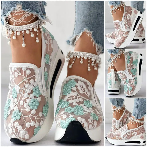 2024 principios de la primavera nueva malla zapatos individuales señaló muffin grueso fondo zapatos casuales bordados zapatos de las mujeres